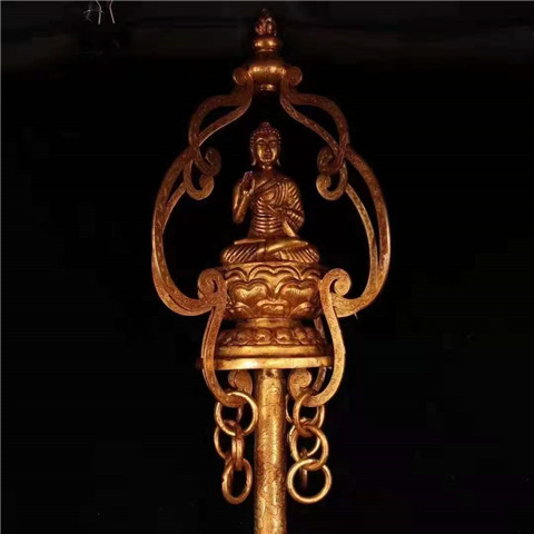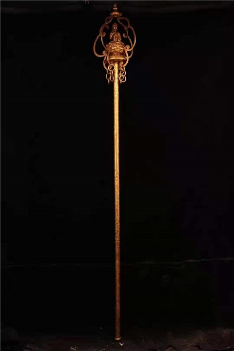 珍藏老古寺院收鎏金禅杖