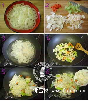 5:倒入沥干水份的藕片,快速翻炒片刻,加入适量盐调味;