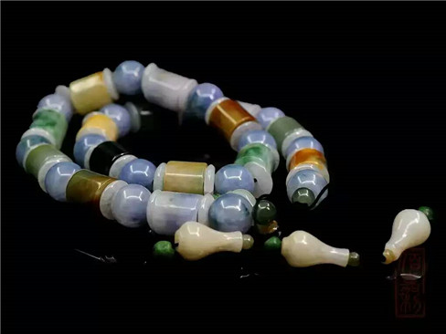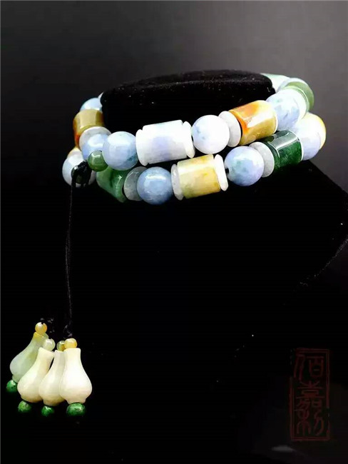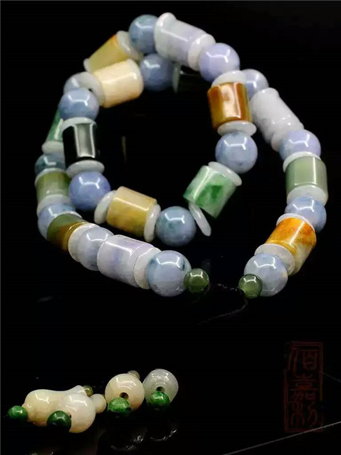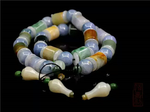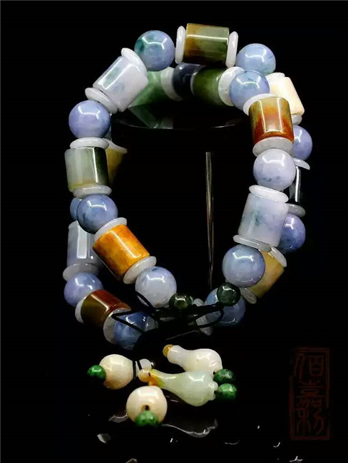 【坛城藏品介绍】手串选用绿翠、紫罗兰、紅翡、黄翡、白翡五种翡翠珠子,穿制而成,色彩艳丽,水头充足,所谓“五福临门”,就是指中国传统五福的说法,福、禄、寿、喜、财,翡翠最漂亮的五种颜色与这五福相联系,同时用于一件翡翠手串之上,搭配难度可想而知,整串颜色过渡自然,结构对称,完美和谐统一 。