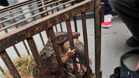 森林公安展示的被走私贩卖的活体穿山甲