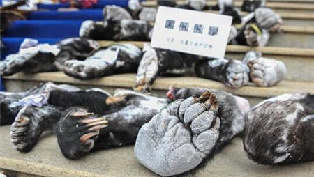 云南森林公安集中展示收缴的黑熊熊掌