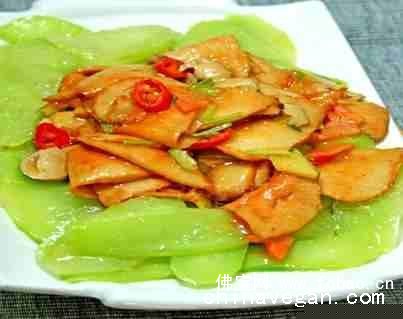 菇精)勾一芡,滴几滴橄榄油出锅装盘放在莴苣片之上即可。