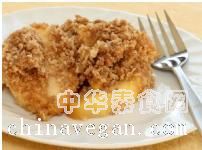 食材:4个大型酸苹果、? 杯糖、1/2 杯面粉、1茶匙肉桂粉、1 杯半燕麦片、1/3 杯素食玛琪琳