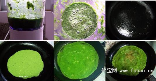 3、韭菜汁连渣一起入饼,营养更丰富,而且并不影响口感的细腻。