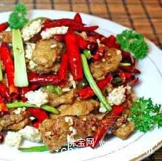 4、低油温将干红辣椒微炸一下备用。