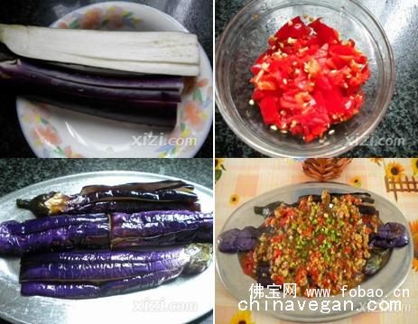 简介 材料:茄子、红辣椒、蒜头、素肉碎、葱配料:白醋、豆瓣酱、白糖、盐、油、香油、生粉做法:茄子:1、将茄子洗干净对半切(无需去皮),一分为四(看茄子大小),再将每一..