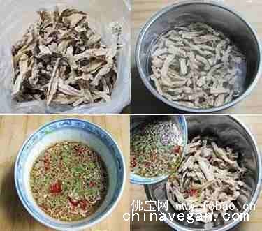 1、茄干用热水泡软,控干水分即可。