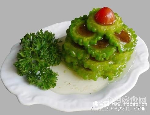 简介材料名称:苦瓜 200克、甜枣 80克、小番茄 1只;调料:冰糖汁 制作方法: 1、 苦瓜去两头,去心,飞水冲凉待用;2、 甜枣去核打碎待用;3、 将甜枣末塞进苦瓜,改刀装盘浇..