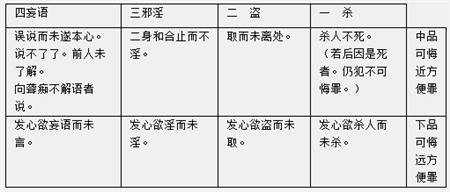 罪分上中下三品。杀盗淫妄四戒。皆具三品。饮酒一戒。唯有中下二品。故先后别列。