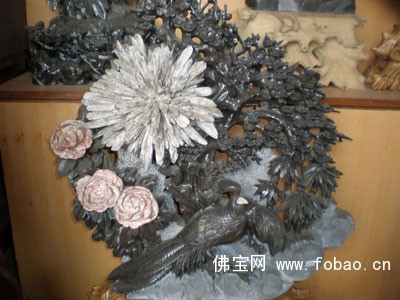 英文名称 liuyang chrysanthemum stone 产于湖南浏阳河一带的碳酸盐质沉积岩中的菊花石。层位为下二叠统栖霞组。于沉积成岩作用后期碳酸钙(方解石)置换天青石形成形似菊花的放射状集合体。这些集合体的中心是坚硬的燧石。花瓣则保留了天青石晶体的斜方长柱状外形。按花径的大小和花朵的形态可分为绣球花、瑚蝴花、铜钱花;蟹爪花、鸡爪花等品种。其中以前三者具有较高的工艺利用价值。在工艺上,这种菊花石多用于雕制菊花状的花卉摆件、茶具、笔筒等。为增加菊花与底色的颜色对比,在制作工艺品的过程中,常在灰白色的基底表面涂上黑色颜料和清漆。1915年在巴拿马国际博览会上,用其雕制的工艺品曾获金质奖牌。