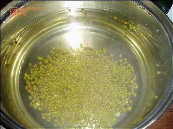 锅里加凉水,我加了半锅,随即倒入洗好的绿豆。