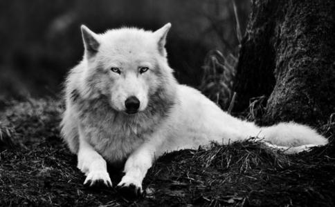 这时,从狼群里走出了一只白狼。这只狼身材高大,从前蹄到头部足有1.5米长,浑身雪白,前额上有一个灰色的倒三角,一对铜铃般的绿眼睛闪烁着凶残的光芒,一条半米长的尾巴高傲地摇来晃去,四周的草木被打得叭叭作响。我的心一惊,经常在书中读到的狼王今天真的出现了。群狼见到狼王后,纷纷惊恐地躲在它的身后,仿佛像一群士兵簇拥着他们的元帅一样。我和弟弟自然成了它们唾手可得的猎物,它们想让狼王展现它的捕食绝技。然后,分享我们的血肉。