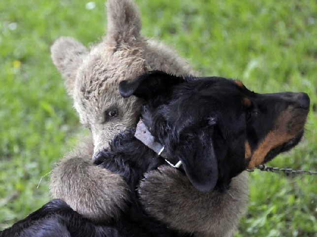 简介小棕熊和小狗的友谊动物之间的友谊是我们所意想不到的。斯洛文尼亚中部城镇Podvrh,1个月前,这只3个月大的小棕熊独自闯进了Logar家的后院,于是这个家庭就收养了它,取名..