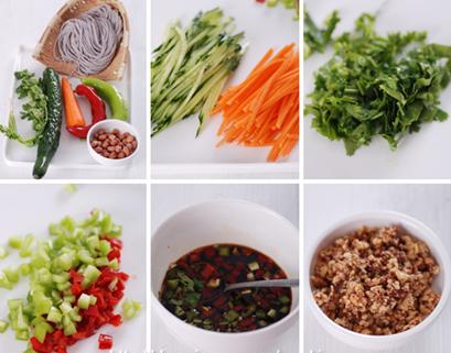 简介材料:黄瓜,胡萝卜,青红辣椒,香菜,花生米。 调料:植物油,醋,生抽,素蚝油,盐,香油,辣椒油。做法:1、备料:黄瓜胡萝卜切丝,辣椒香菜切碎。2、调汁:醋,生抽,..