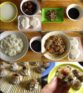 简介原料:干香菇10朵糯米185g饺子皮酱油2大勺糖一勺半(大约)香菇水2大勺植物油2大勺 做法:1、提前泡好糯米和干香菇,香菇挤干水切碎备用。2、酱油、糖和香菇水兑成调味汁。..