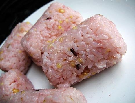 这次用的胚芽米多一些,所以不像上次的饭团出来是红色的。这次的就粉粉的感觉。