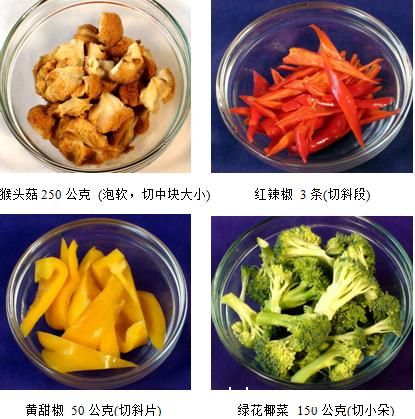 简介 红烧猴头菇(10人份)材料: 调味料: 水 2大匙 素蚝油 1大匙 天然味素 1又1/2大匙糖 1/2茶匙 辣椒酱 1茶匙 辣椒末 1茶匙 油 1大匙 粉1茶匙 水100CC 作法:1、绿花椰菜洗..