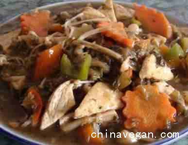 :雪菜、豆腐、金针菇、胡萝卜、姜。调料:植物油、盐、糖、酱油、胡椒粉、味素、生粉。