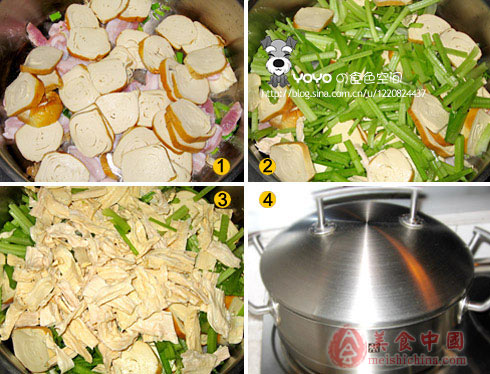 3、铺上腐竹。