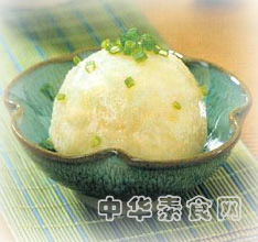 土豆六个、黄油一汤匙、盐一小撮、酱油少许、香菜少许、牛奶四分之一碗。做法:将土豆洗净煮熟,捣成泥状,一边捣,一边加入黄油、盐、酱油和牛奶,捣碎、捣匀后,装盘,洒上香菜末。这是三人分量,配以下面的色拉或热汤。