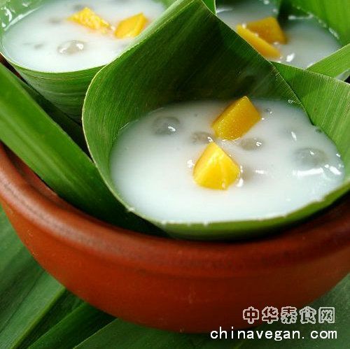 西米30克、椰汁1罐、糯米粉30克、粽叶3片、芒果一个。