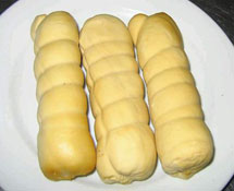 3. 再用1张千张皮(较前稍大)作包皮,把卷状千张皮裹好;